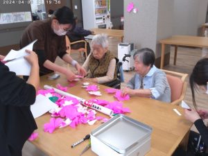 また、施設内でも皆様にご協力いただき、施設の中でも春を感じていただけるよう桜を作りました。