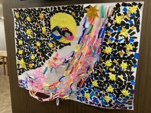 入居者様とともに、ちぎり絵で「天の川」を作りました。
