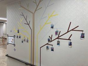 木の枝ごとに入居者様の笑顔の写真を飾らせて頂いております。