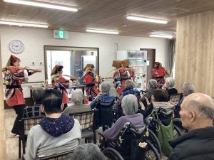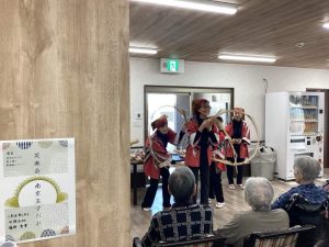 普段お部屋で過ごされている方も食堂に出てこられ、巧みな技で様々に変化する玉すだれに拍手と歓声を上げておられました。