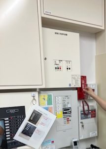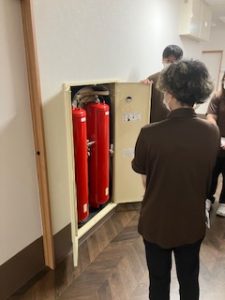 そこで、先日消防訓練と合わせて、改めて館内のどこに何があり、どのように作動するのか等の確認と説明を行いました。